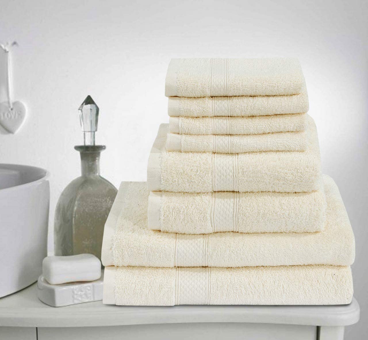 - 8 Pcs Bale Set 4 x Face Towel, 2 x Hand Towel, 2 x Bath Towels