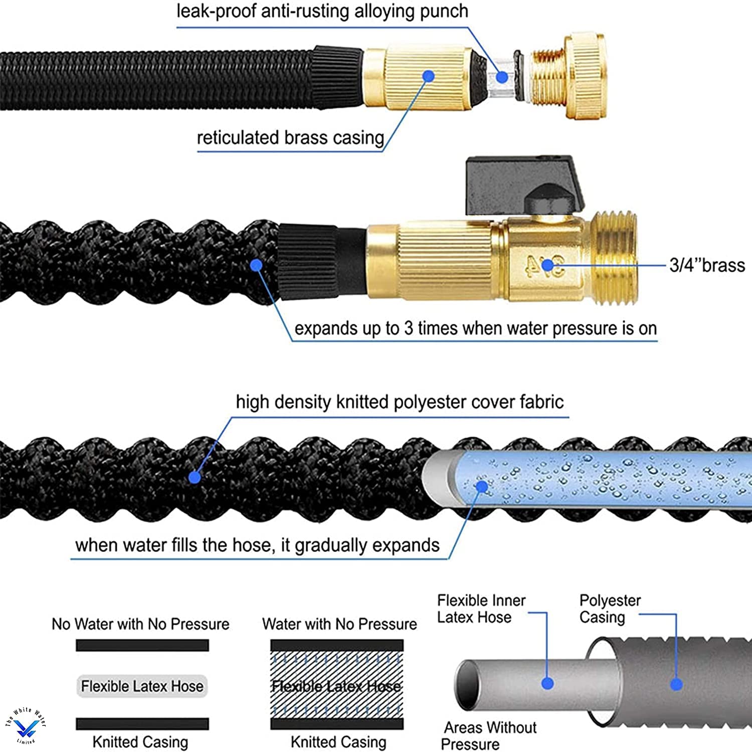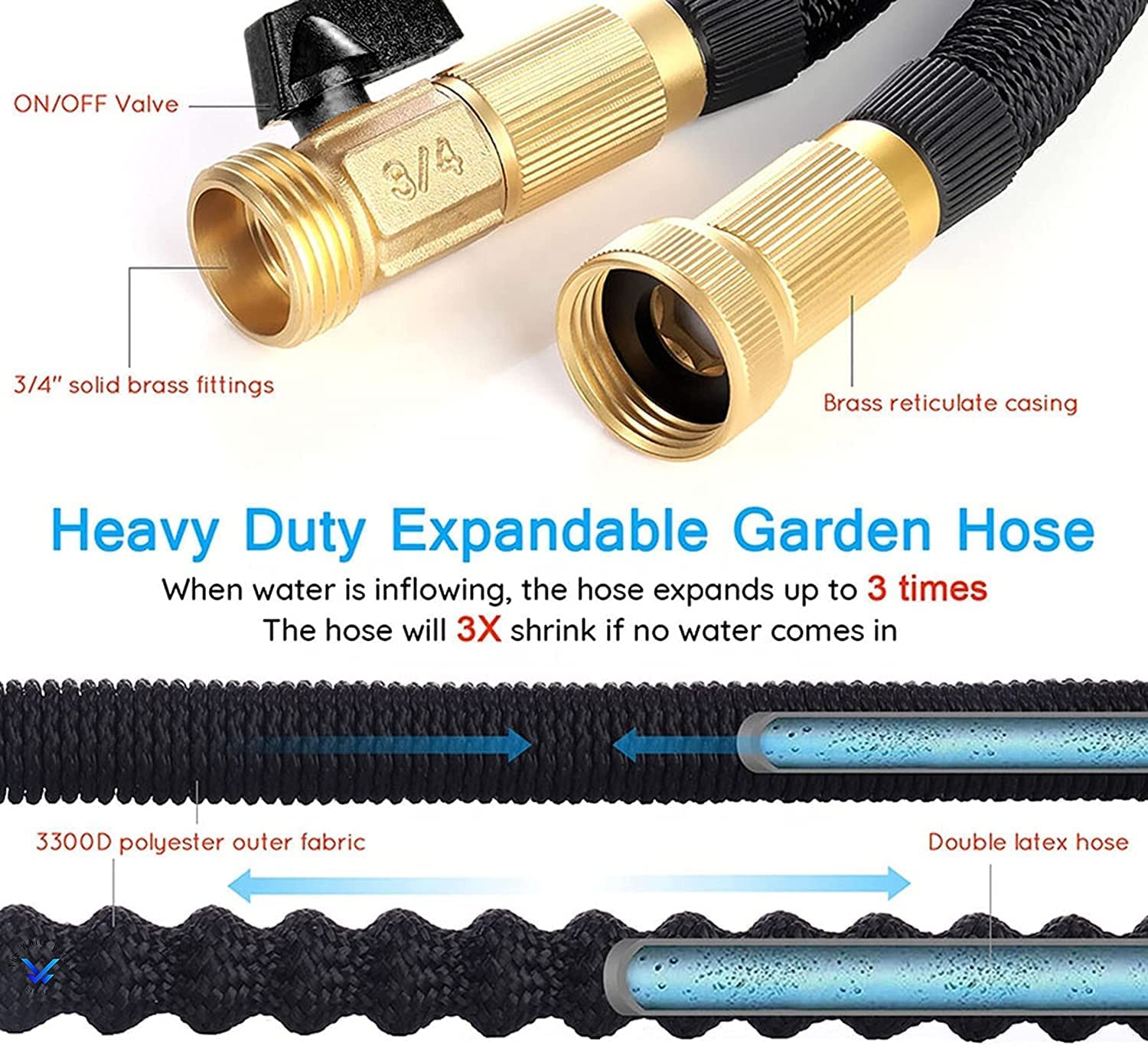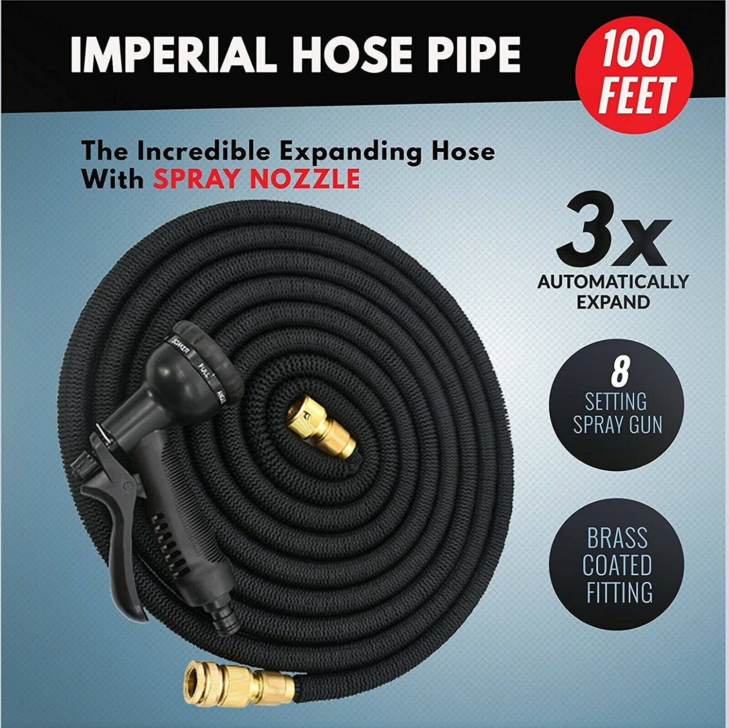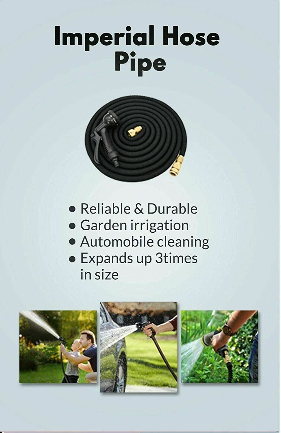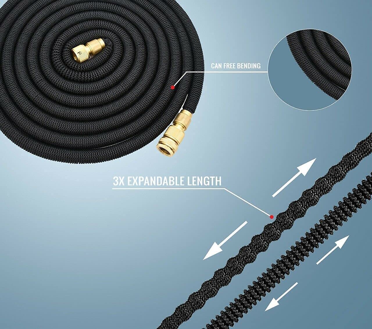 Brass fitting expandable flexible garden hose pipe with spray gun.Super item for gardening, car wash and pavement wash.Durable material with solid brass fittings 1/2 tap Connector and 3/4 Standard Connector.