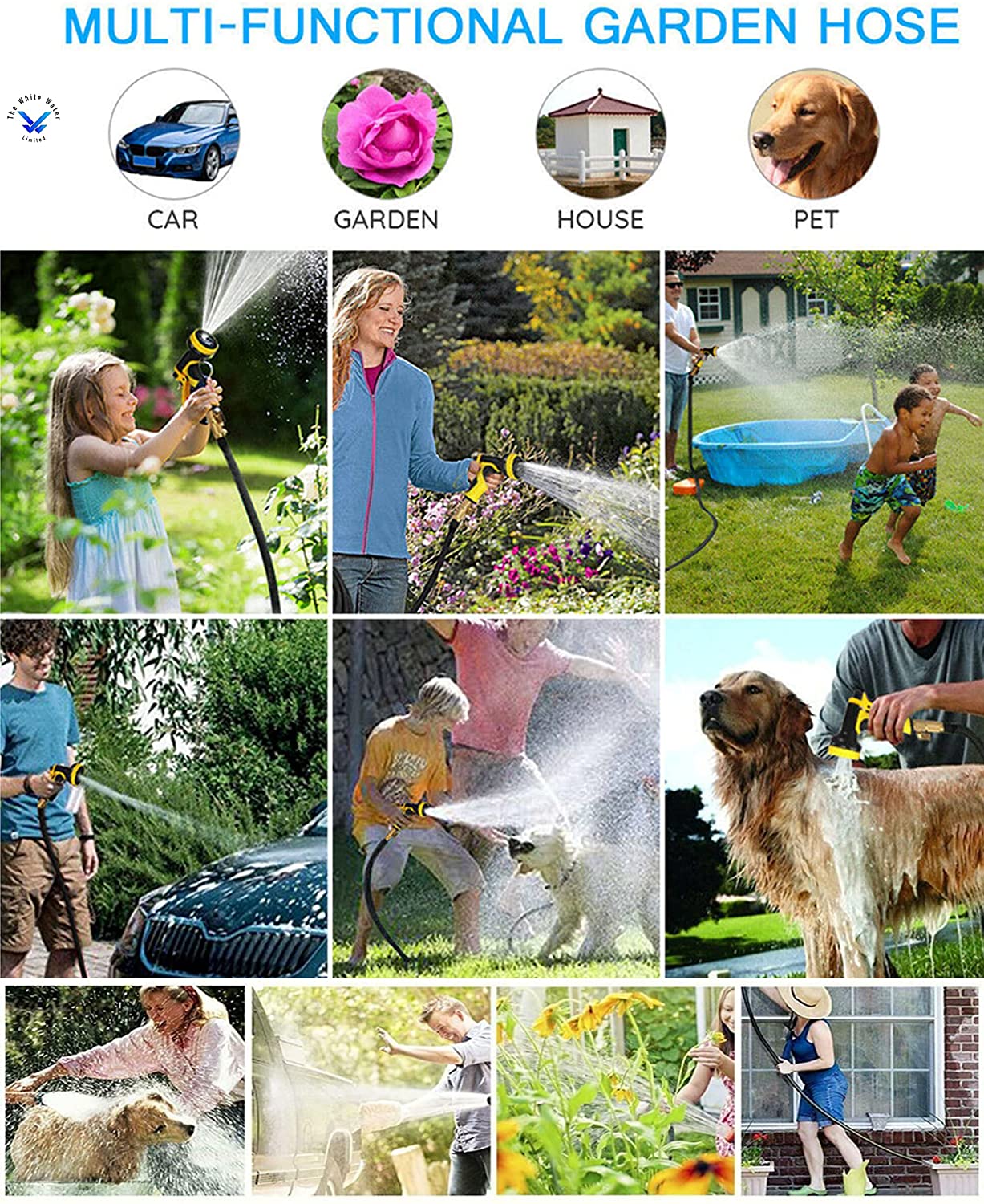 Garden Expandable Water Hose with 8-Function Spray Nozzle, Durable Strength, Blue Inner Latex, Flexible Leak proof with Solid Brass Connector for Watering & Washing 30M (100FT) and 60M (200FT)