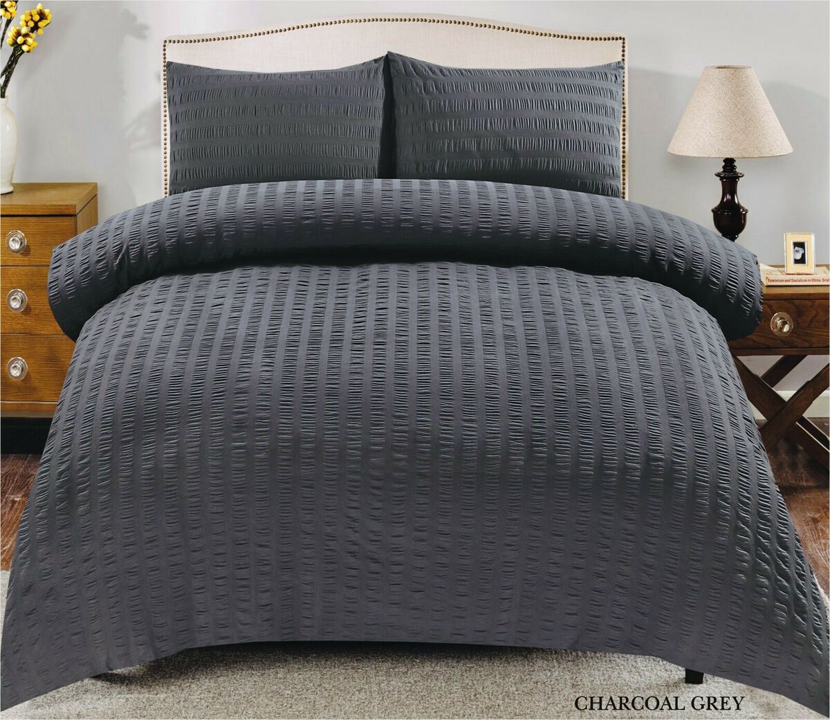 Amazing Seersucker Duvet Quilt Cover Set with Pillowcase and Plain Dyed Matching-colour fitted sheet Premium Quality